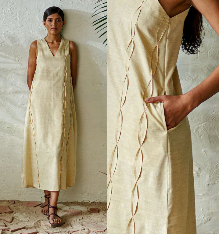 STYLE 02 Aattam Maxi DressComfortable doesn’t have to mean plain, as this dress proves. The expressive brushstroke print gives it movement and mood—true to its name, Aattam (which means dance). The pleats add gentle structure, and the sleeveless cut keeps it cool. It’s a dress that can handle a full day out or a few extra hours of lounging with equal charm. Also, yes, it has pockets. Actual, functional ones. You’re welcome. |